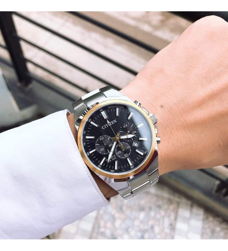 Citizen AN8174-58E është një orë kronograf për meshkuj me stil klasik dhe sportiv. Dizajni dy-ngjyrësh (argjend dhe ari) me fushë të zezë e bën të përshtatshme për përdorim të përditshëm ose raste speciale. Ora ka kronograf funksional dhe tregues me ndriçim për lexueshmëri më të mirë.